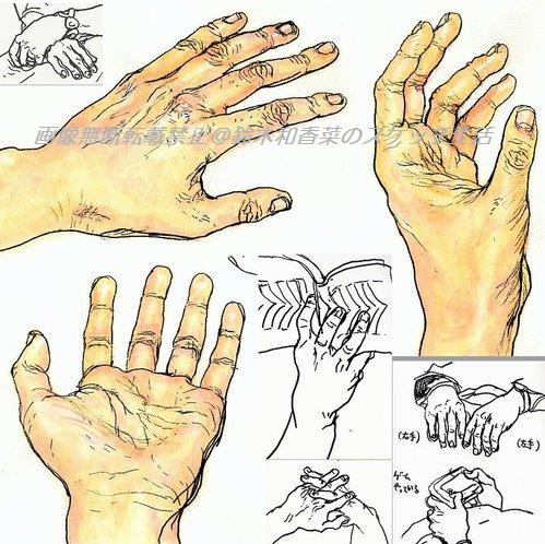 前々から自分や人の手を描いていました。 電車でマイブックにスケッチするのも人物の手にしぼって描いて。 けど、手って難しいですね!自分がこんなにも描けなかったのかと いい意味でショックを受けております。 人物スケッチの時はそれなりに(人の一部として) 自分の手を間近に見て描くのがもう駄目で駄目で。 ある意味顔より難しいかもしれません。 こんな有能で複雑な“道具”をいつも携帯していたんだと思うとまた感動。 これからも手だけ描き続けた方がいいかもしれません。 N先生も手がしっかり描けると人物スケッチが良くなる、と言われていました。