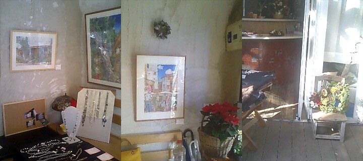 この絵に描かれた御宅でのグループ展参加、 本日搬入しました。(期間;11/20~11/24) ビーズアクセ・パッチワークの方と3人展となりました。