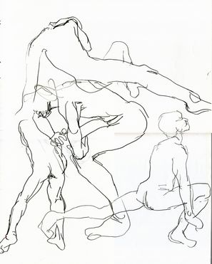 セッションハウスでは月2回(男性・女性モデル一回ずつ)、 関わりのあるダンサーさんがモデルを努める クロッキー会が開かれています。 ダンサーの方が踊ったりポーズをとったりと されるのですが、モデルの質・会の内容共に 日本では最高レベルのクロッキー会だと思います。 美術モデルに所属する専門のモデルさんは 演劇やダンスをやっておられる方が多いですけど それとはレベルが段違いです。