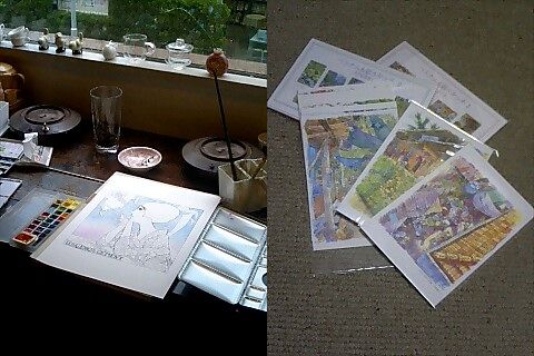 これがとっても良かったです!私好み。 構図や線描(あまり書き込みすぎず、スピーディで手馴れた筆致) は勿論、色も(影部分を含めて)凄く美しいです。 透明水彩絵具の魅力を最大限に引き出した作品群にメロメロ。 ポストカード大量に購入してしまいました。(写真右) PR |
