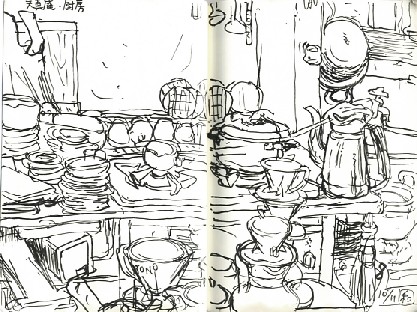 持つべきものは誠実で優し~い身内です。ありがたや・・・ 後は他の親戚に友人、母のお友達、それにスケッチの関係者様、 わざわざ御足労いただき、本当に有難う御座いました。 あ、昨日お店が空いていたのは天気が悪かったからみたいです。 11日のライブの帰り、夜の文花の街に 「火の用心」の拍子木を打って回られている人が。 35年間続けていて、表彰されたとか。 「ここはいつの時代?」といいたくなる、 そんな不思議な街で個展は開催中です。