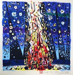 Mさんの渋い作品の多さとKさんの絵の元気一杯さ、 そして睦稔氏の祝欄たる輝きに満ちた版画の数々。 疲れたけど、パワーをいただきました。 京橋のボクネンズアートもいつか行くぞ! 鉛筆殴り書きなんですが 「タイトル」「○枚中△枚目」「制作年月」「自分の名前」 と横並びにしっかり描いた横にご丁寧にまた自分の名入りの 手作りハンコを押しています(※これが結構大きい)。 タイトルの脇にこれも鉛筆でお花や★をぐりぐり描いているし。 一つの版木で何枚も刷るのに、一枚一枚やっている? またこの方、凄い制作ペースなんですよ。 すんごくパワーがありあまっている方なんだなあと思いました。