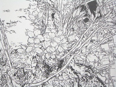 何?この本に喧嘩売るようなタイトルは? って感じですけど、すみませ~ん(怯) 昨日購入させていただきましたけど、素晴らしい本です。 花は好きですし、花を描くのも好きだったはずですけど、 今一つ描こうという気が起こらない。これから春本番なのに。 実は今描きたいと思っているスケッチポイントがいくつかありますけど、 皆木や建物で花ではないのですね。 今まで寒すぎて「暖かくなったら絶対来る!」と思っていた場所で。 で、4月に桜を全紙で描くという課題ですけど 春になって浮き立つ気持ちも確かにあるので 去る日曜日に下見を兼ねて新宿御苑へ行ってきました。 色々な桜の花も咲いていましたけど、 何かあまり描こうと思えない。「モチーフに出会う」という感じではない。 春だ、花が咲いたから描こう、じゃなんだか受動的過ぎるし。 でも折角だから、勝負!?と言った気持ちでソメイヨシノ?の 花やつぼみをF4号に頑張って描いてみたけどイマイチ。 これは色をぬらないだろう。 で、気に入った洋館と木を思いっきりラフスケッチしてみた。 最初に気に入ったポイントです。 スケッチブックの内表紙?の茶色い紙に3・2ミリのピグマペンで。 始めの桜スケッチはまだ硬いタッチだったってこともあるけど、 いい加減なくらい強引に手早くやったこのスケッチの方が 自分は好きです。木の幹や枝のうねうねした感じに惹かれます。 そうか!気づいたけど小さい花をちまちま描いていて、 なんだか気持ちが鬱屈する感じだったのかもしれない。 (じゃあ大きい花を描いたら、とは言わないで下さい・・・) 今の自分は太ペンでグイグイ描くほうが気持ちいいのでしょう。 ここへくる途中でも木の幹ばかりに目が行っていたし、 もう4/13の自分は、八重桜に目を奪われない限り 一人KYなスケッチャーと化していると思います(苦笑) |