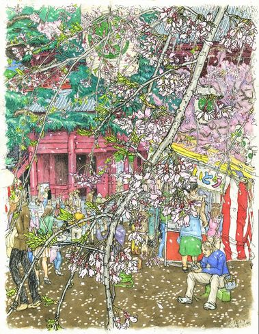 アップした絵はその芝・増上寺のしだれ桜を描いたものです。